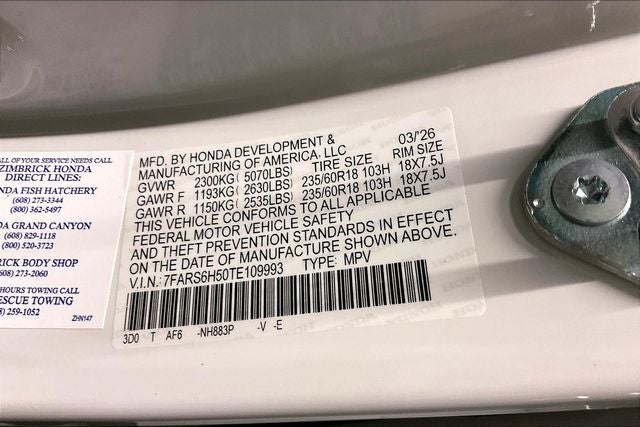 - Tires: 235/60R18 103H All-Season