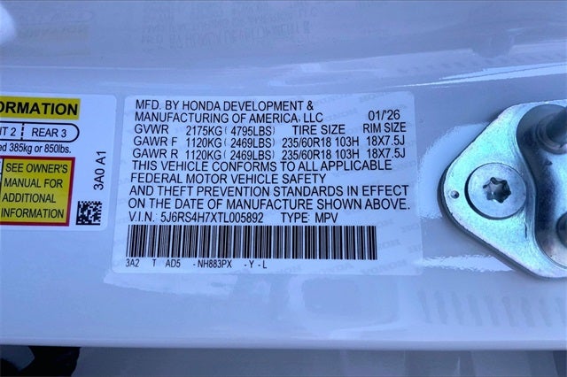 - Tires: 235/60R18 103H All-Season