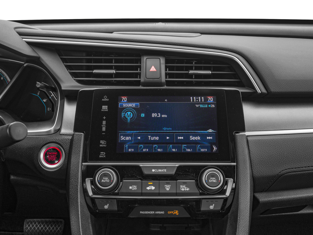 - Radio: 450-Watt AM/FM/HD/SiriusXM Audio System -inc: 9 speakers, subwoofer, 7-inch display w/high-resolution WVGA (800x480) electrostatic touch-screen and customizable feature settings, Bluetooth® HandsFreeLink, Bluetooth® streaming audio, radio data system (RDS), speed-sensitive volume control (SVC), 1.5-amp USB smartphone/audio interface in front, 1.0-amp USB audio interface port in center console, HondaLink, Apple CarPlay integration, Android Auto integration, Pandora compatibility, SMS text message function, illuminated steering wheel-mounted audio controls and body-colored fin-type roof-mounted antenna