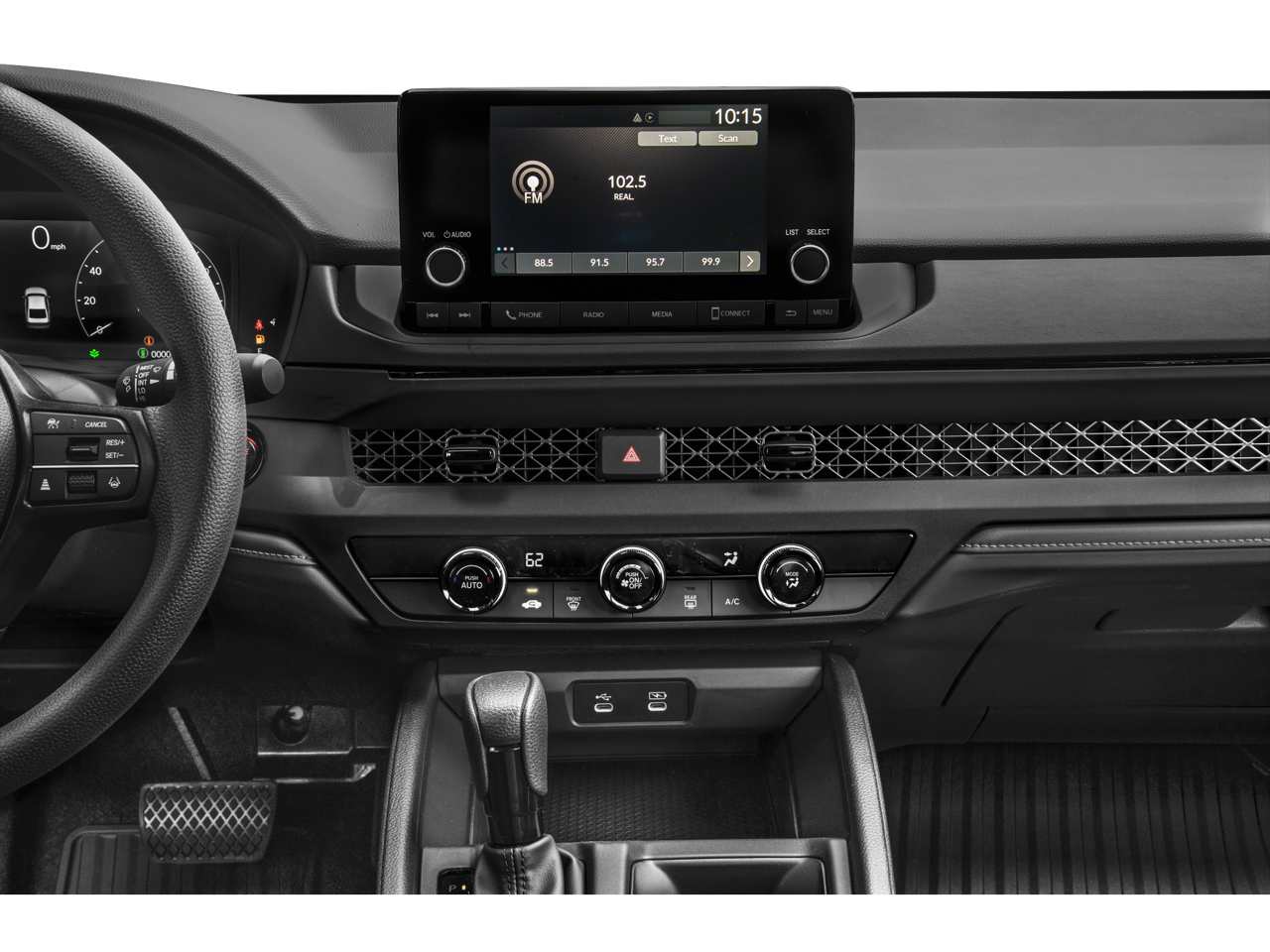 - Radio: 160-Watt Audio System -inc: 4 speakers, 7" color touchscreen, wired Apple CarPlay and Android Auto compatibility, Bluetooth® streaming audio, 1 USB-C 3.0A smartphone/audio interface, Wi-Fi hotspot capability and HondaLink subscription services, HondaLink subscription services comes w/a 3-month trial, Some features require geolocation data, At the end of the trial period, purchase of a subscription is required to continue service