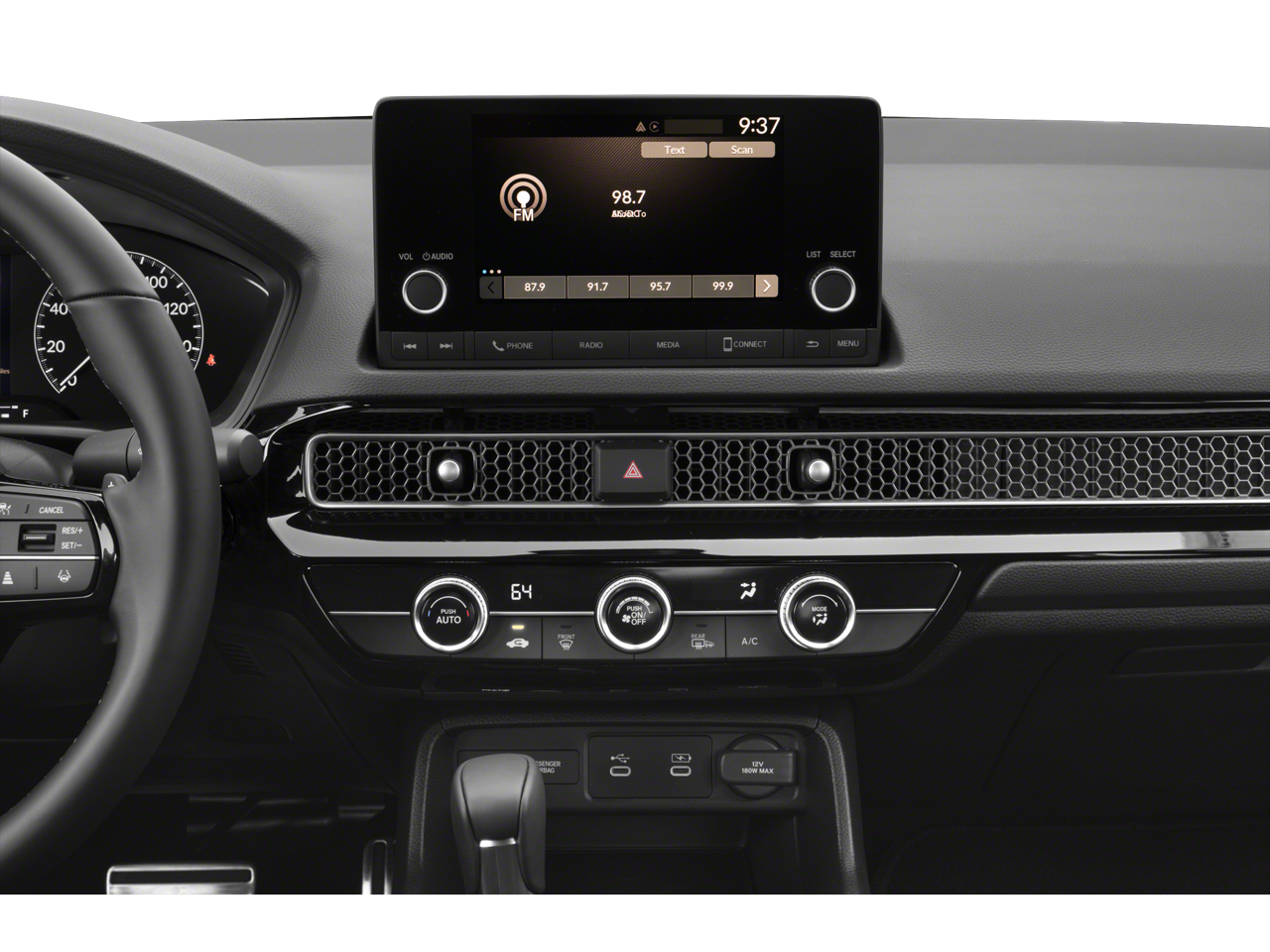- Radio: 180-Watt Audio System -inc: 8 speakers, 7" color touchscreen, Bluetooth® HandsFreeLink and streaming audio, HondaLink, Speed-Sensitive Volume Compensation (SVC), Radio Data System (RDS), Apple CarPlay and Android Auto compatibilities and USB-C 3.0A smartphone/audio interface/charging port in front seats